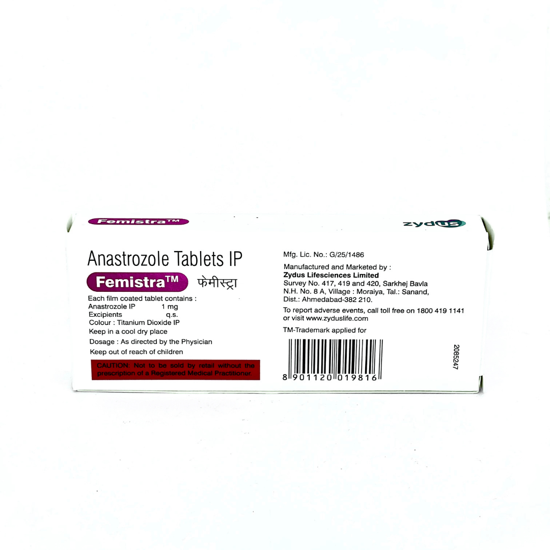 Femistra 1mg tablet is an anticancer drug. It belongs to the medication class known as aromatase inhibitors It is used to treat hormone-dependent breast cancer in postmenopausal women.